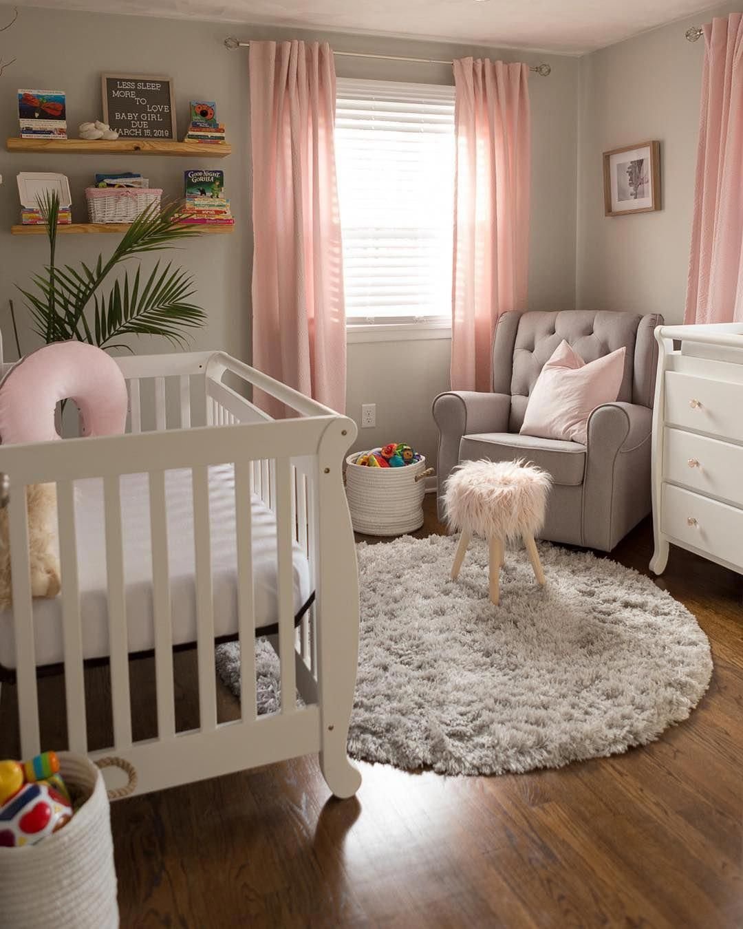 Мы можем себе представить, что вы сидите на стуле и читаете свой любимый роман, продолжая наблюдать за своим малышом, который спит в детской кроватке. Этот стиль комнаты ясно показывает, как сделать так, чтобы вы, как родители, и ваши девочки чувствовали себя более комфортно и расслабленно, проводя время в этой комнате.