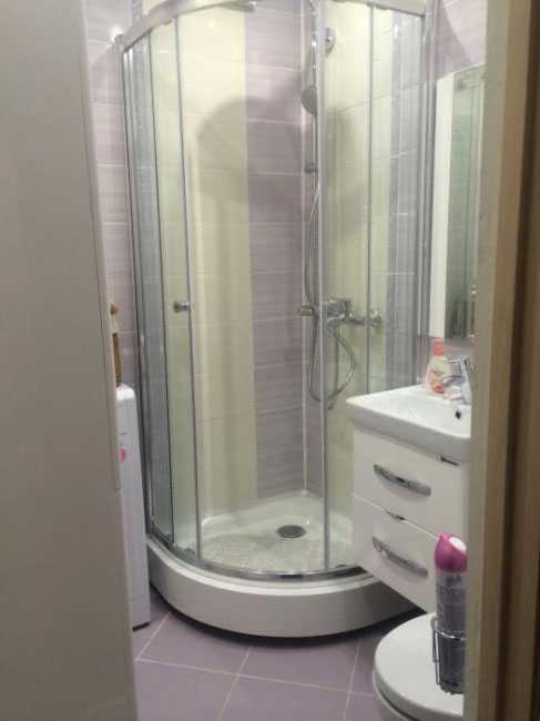 Душевая кабина действительно освобождает пространство, давая место еще и для стиральной машины.