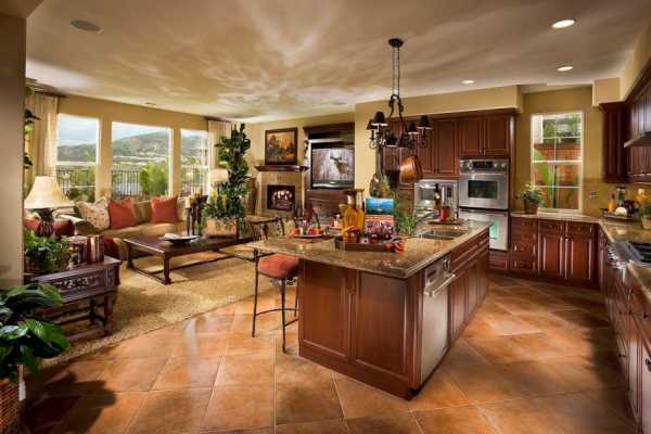 Обычно в деревенском стиле оформляют загородные дачи и домики. Также он неплохо подходит для квартир, в особенности для кухонь.