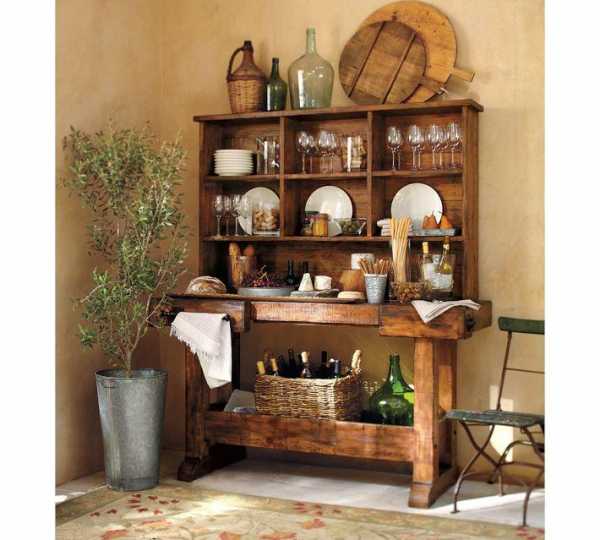 Открытый комод и посуда в деревенском стиле, Pottery Barn