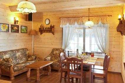 Свои характерные черты имеет и отечественный вариант стиля кантри. Главное его отличие — любовь к натуральному дереву, ведь воссоздает он атмосферу исконно русской бревенчатой избы. Он, как и американский кантри, отличается массивностью и грубоватостью, однако вместо камина в таком интерьере появится беленая или декорированная изразцами печь, а пэчворк и индейские орнаменты заменят кружевные скатерти и салфетки. Идеальным вариантом оформления стен станут деревянные панели или имитация настоящих бревен, возможен вариант простой побелки.