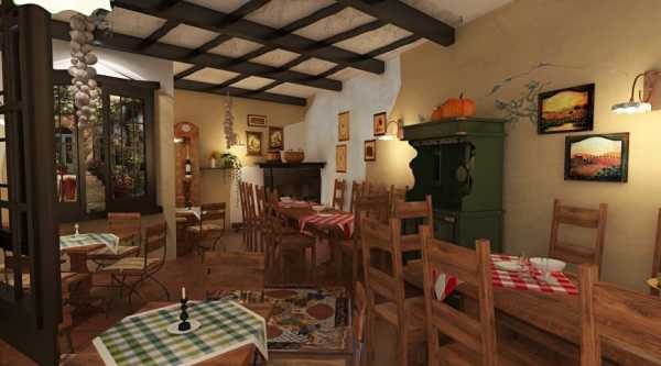 Стены чаще всего оформлены «под камень» — потрясающая атмосфера старинного замка!
