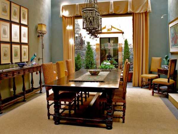 - мебель обычно из массивного дерева, простых очертаний без излишнего декора