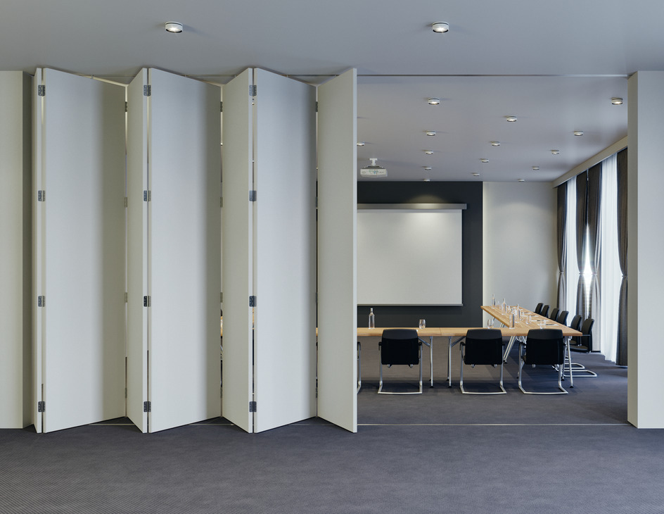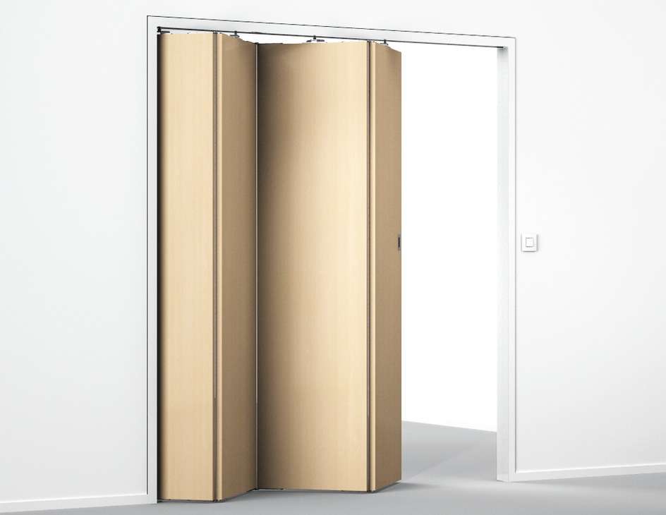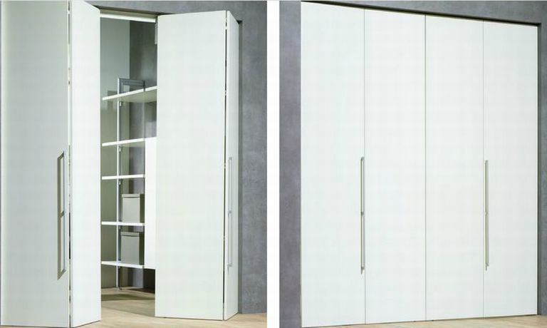 - В открытом положении складные створки практически не занимают места, в отличие от распашных дверок;