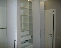 Недостатками такой системы открывания встроенных шкафов является невозможность одновременно получить доступ ко всему содержимому шкафа (при дверях-купе) ли необходимость устройства фальш-стенка, в которую задвигаются открываемые створки встроенного шкафа. А это возможно только при проведении работ по основательному ремонту помещения.