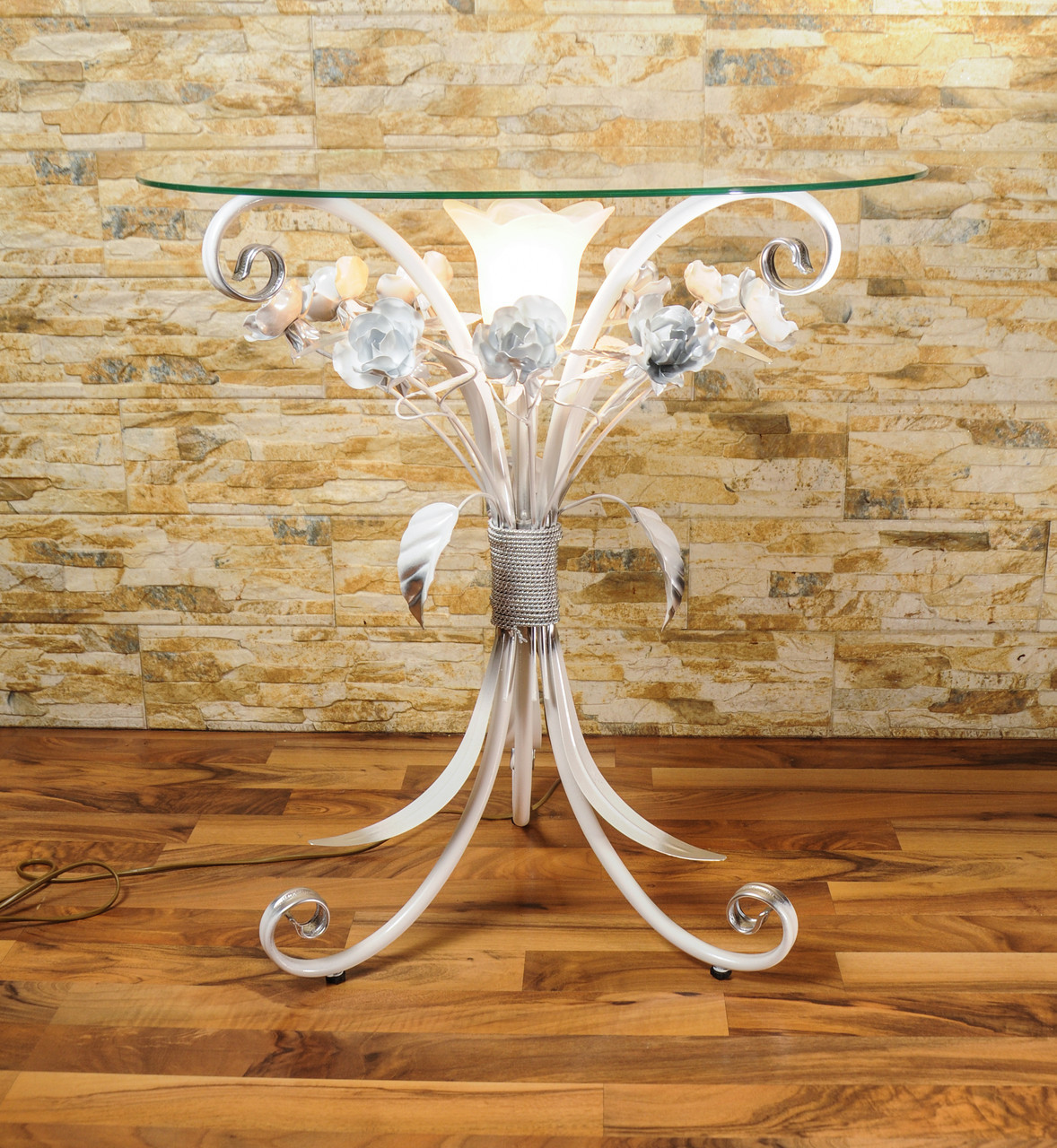 Столешницы из прозрачного стекла или акрила, позволяют любоваться всеми художественными завитками и изгибами. Кроме того стеклянная поверхность, идеально сочетается с металлом, что дополняет внешний вид всего изделия.