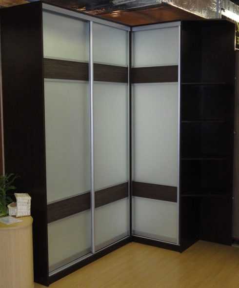 Шкаф-купе, состоящий из двух примыкающих друг к другу модулей, имеет в плане форму буквы «Г». Одна из частей, более широкая, обычно предназначается для верхней одежды и имеет штангу, которая занимает угол. Короткий модуль оснащается полками.