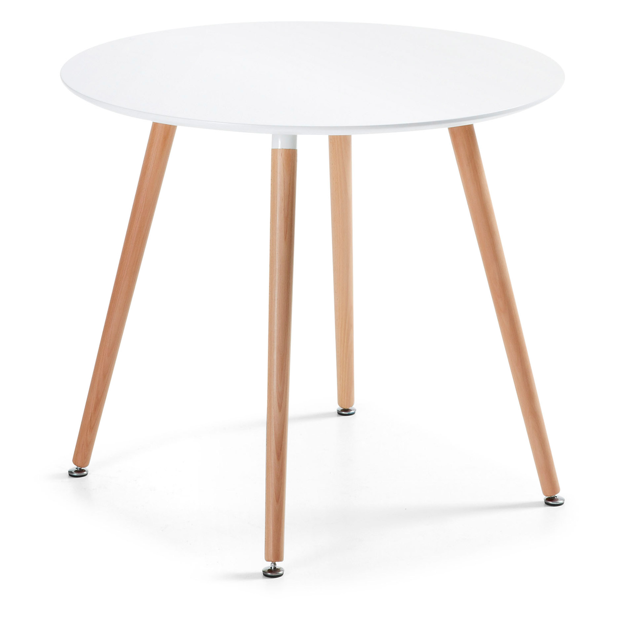 На фото круглый классический стол в интерьере кухни, выполненной в скандинавском стиле.