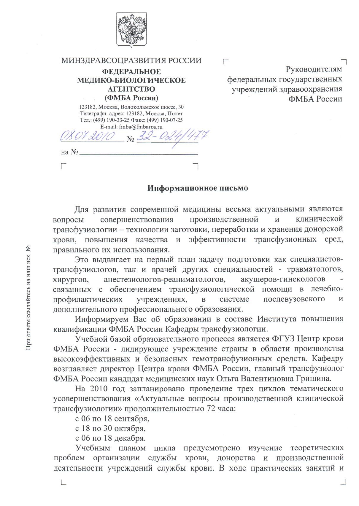 Образец информационного письма: