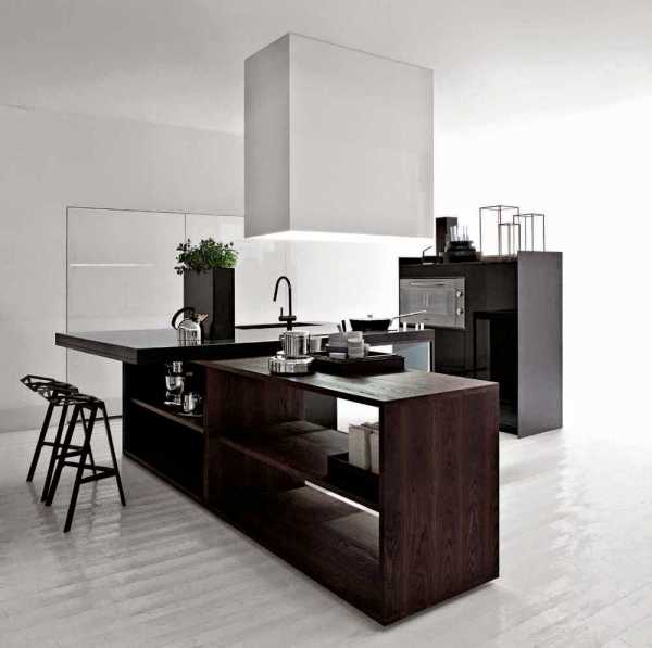 - сделайте кухню максимально компактной. При возможности используйте небольшой гарнитур, установите встраиваемую многофункциональную технику и поставьте барную стойку, которая будет играть роль стола и рабочей поверхности одновременно;