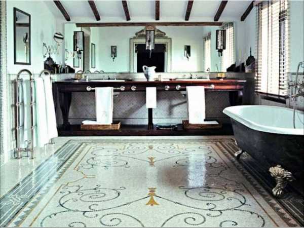 - Под «Древнюю Грецию». Предполагается крупная плитка для просторного помещения. Для небольшой ванной это не вариант, будет не стильная отделка, а «обделка» в пафосном стиле. В древнегреческом стиле предпочтительны желтоватые и розоватые оттенки плитки. Ну и, конечно, должны присутствовать национальные узоры и художественные элементы.