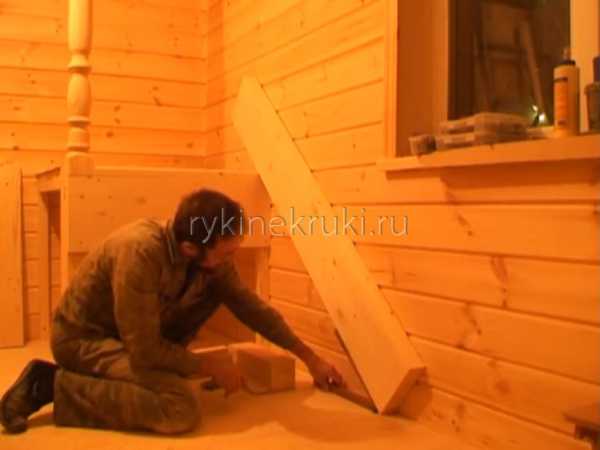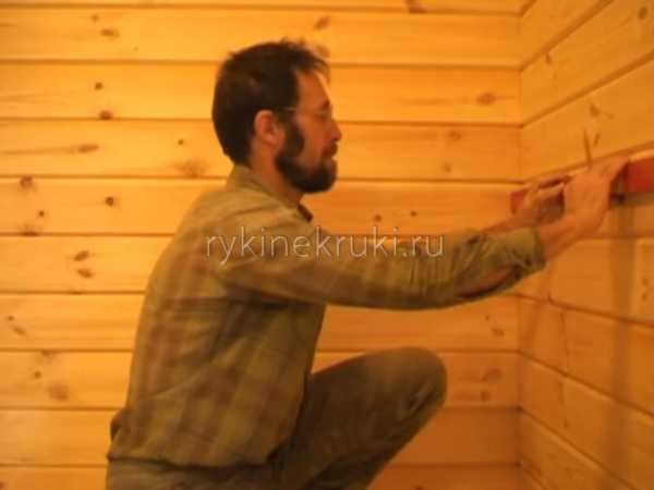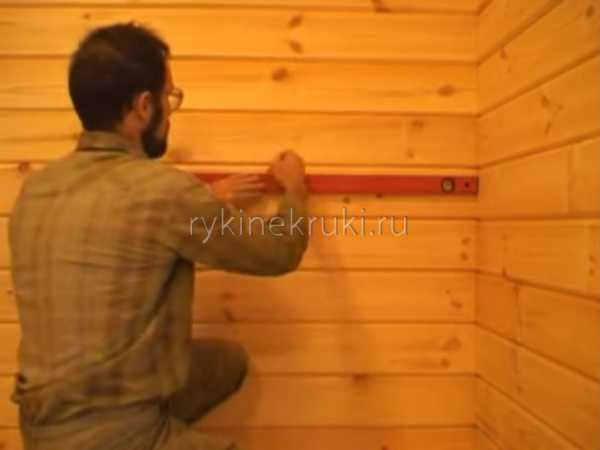 По выбранному уровню (строго горизонтально) к стене большими шурупами крепятся бруски: