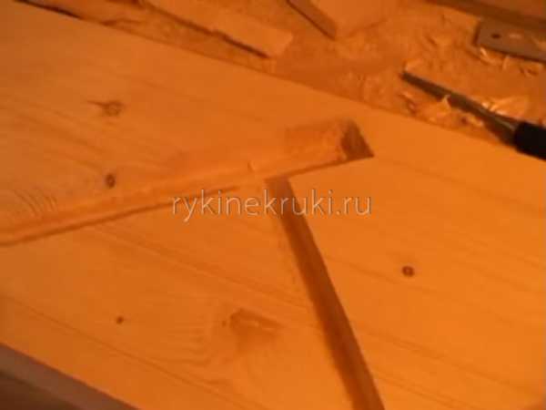 Затем при помощи циркулярной пилы, по ранее сделанному рисунку, осуществляются пропилы: те, что с краев — точные, а в середине — любые. Это делается для того, чтобы потом дерево было легче выбирать стамеской: