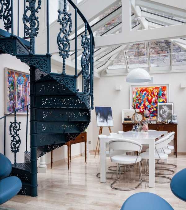 Полный диаметр таких конструкций в частных домах обычно не превышает 2 метра. Они выглядят очень эффектно в современных домах, часто являются частью оригинальной дизайнерской задумки. Но следует учесть, что подниматься по таким лестницам довольно сложно людям пожилого возраста и страдающим хроническими заболеваниями, а также маленьким деткам. Чаще всего винтовые лестницы выполняют роль декора, красивого украшения в помещении с соответствующим дизайном.