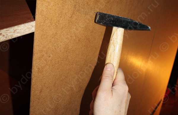 Для большей надежности прикрепите стенку из ДВП к шкафу с помощью саморезов. Именно так изделие не будет испорчено во время эксплуатации.