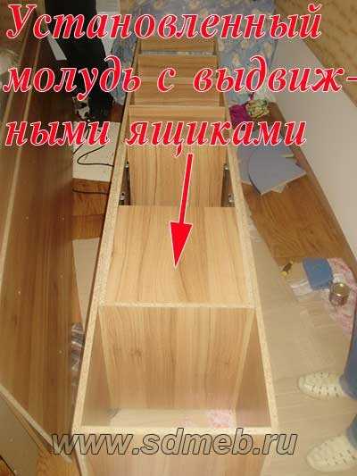 - Для выдвижных ящиков устанавливаем механизмы и только после сами элементы.