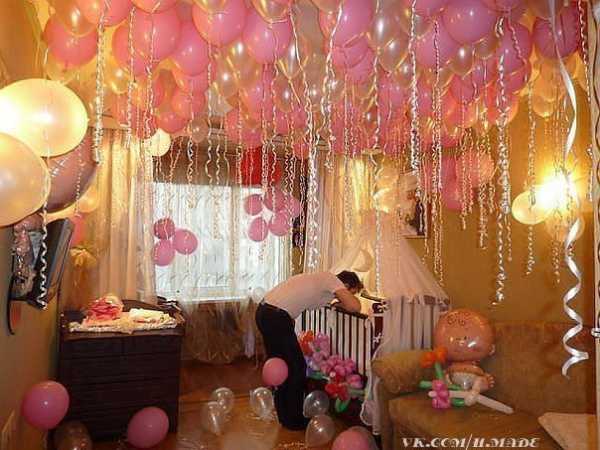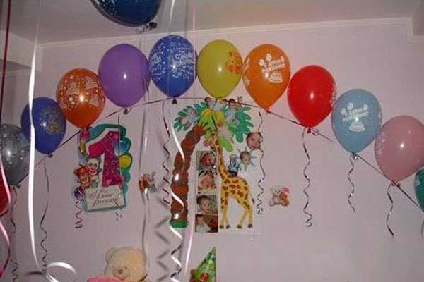 Именно шары помогут родителям украсить комнату на первый день рождения ребёнка. Годовалый малыш испытает радость и удивление, когда проснётся утром и увидит яркие и красочные воздушные украшения, парящие под потолком.