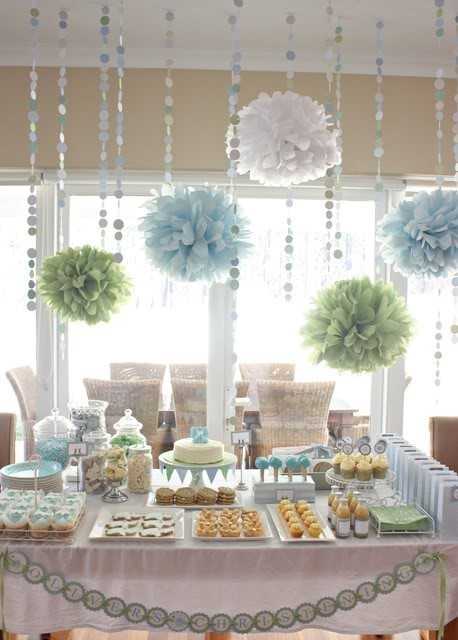 Угощением будут вазочки с яркими и вкусными драже, небольшие «букеты» из леденцов на палочке, оригинальные печенья или маленькие пирожные. Также рекомендуется украсить столик сладостей шарами или гирляндами.Украшение комнаты в определённом стиле