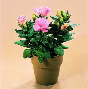 Наилучший субстрат для выращивания эустомы комнатной – смесь из перепревшей древесной коры и торфа в соотношении 1:1. Если приобретать готовый, то наиболее подходящим будет грунт для сенполий. Ёмкость для посадки выбирают широкую, но неглубокую, так как корневая система растения мочковатая и не сильно развита. На дне обязательно нужен дренажный слой. Можно выращивать вместе несколько экземпляров. Например, в горшке объёмом 2,5 л свободно поместятся три цветка. Для лучшего кущения и обильного цветения побеги некоторых сортов рекомендуется прищипывать.
