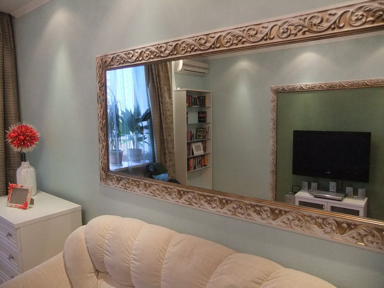 Такой прием часто можно увидеть при просмотре фото зеркал в гостиной, которые можно найти на любом дизайнерском сайте.