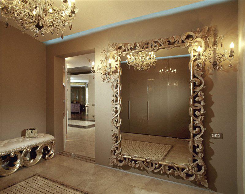 - Классический. Для данного стиля идеальны большие зеркала в габаритной раме из натурального дерева. Обрамление может быть украшено резьбой. Отлично в такой стилистике смотрятся антикварные модели, уместно использовать мебель с зеркалами.