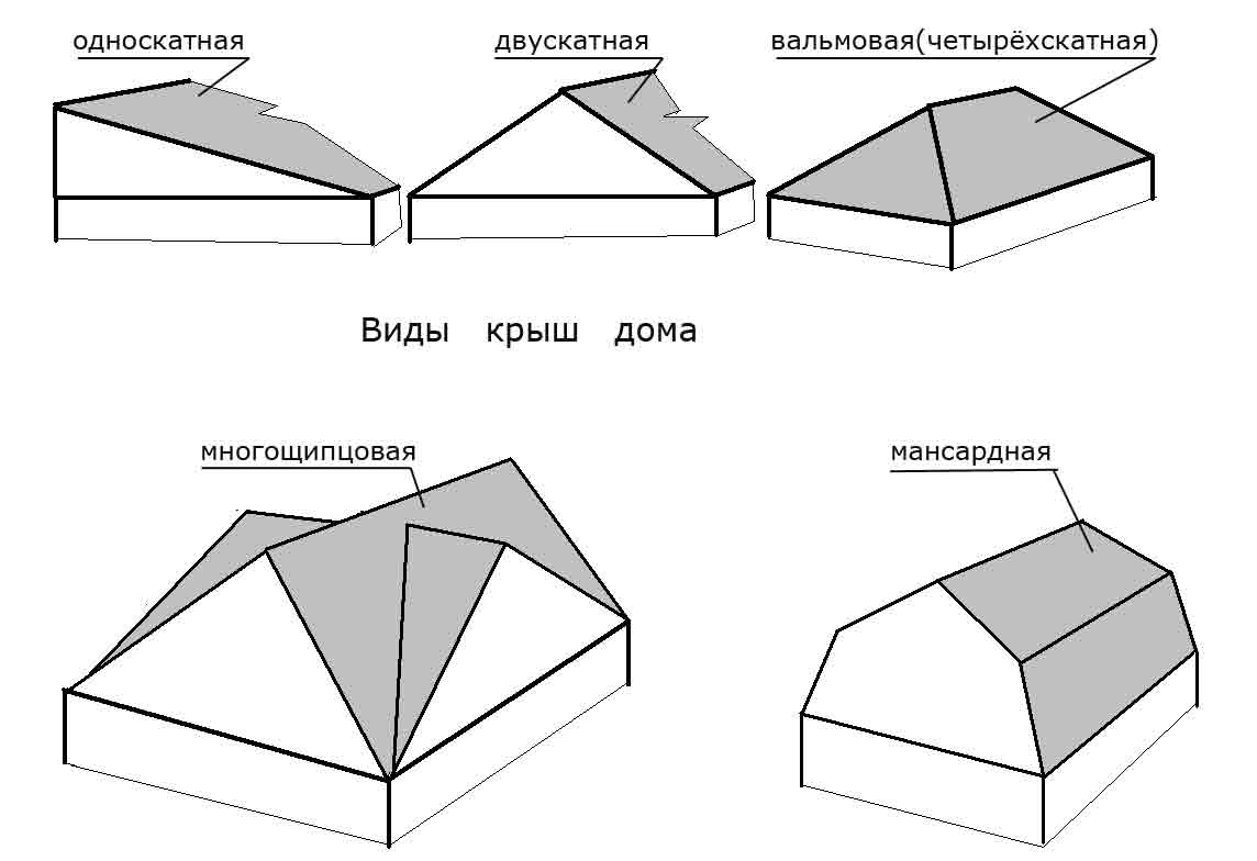 Несколько базовых конструкций крыш.