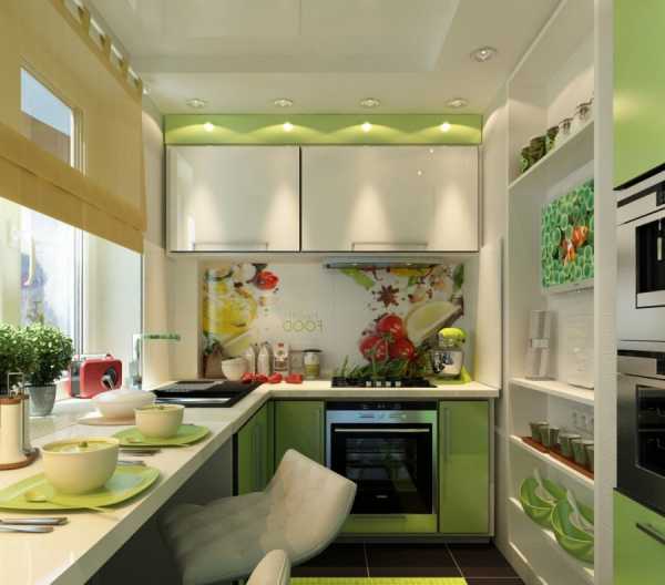 В той части, где будут осуществляться все приготовления, уместными станут оттенки красного или салатовый цвет. Плюсом окажется и тот факт, что эти цвета отлично сочетаются с белым, черным и серым.
