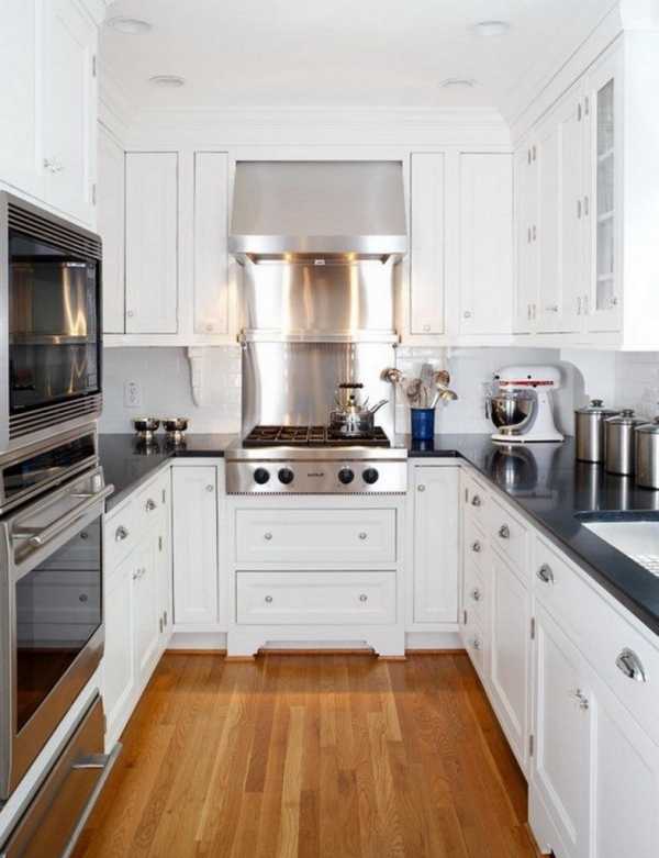 Использование встроенной техники. Полезно будет заказать кухонный гарнитур с множеством больших ниш под бытовую технику: холодильник, духовку, микроволновую печь, посудомоечную машину и т.д. Это решение позволит сэкономить значительную часть кухонной площади.