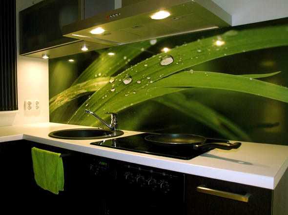 Также можно использовать легкосъемный прозрачный фартук, выполненный из прочного закаленного стекла. Секрет такой задумки прост. Стену за таким фартуком можно будет перекрашивать много раз. При этом достаточно будет просто снять фартук. Подобные переделки обойдутся вам недорого, да и принесут просто потрясающий эффект.