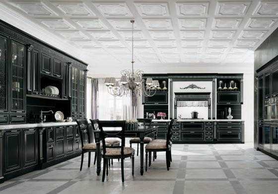 На фото — пример черно-белых кухонь в классическом стиле.