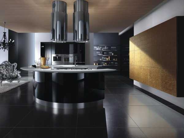 Всем известно, что темные оттенки визуально уменьшают помещение. Поэтому для полного раскрытия черного цвета его необходимо использовать только для просторного помещения с отличным освещением и высокими потолками. Не забудьте и об искусственном свете. Причем свет нужен не только для рабочей и обеденной зоны, но и общий, который будет «литься» с потолка. Темные глянцевые поверхности отлично отражают свет, а также зрительно увеличивают помещение. К тому же создается ареал загадочности.