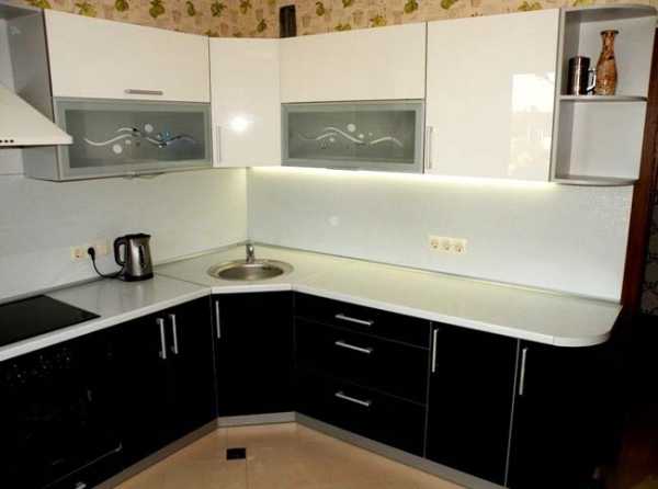 - помимо глянцевых и зеркальных поверхностей, смягчить эффект жесткого контраста помогут радиусные фасады, особенно если мебель угловая;