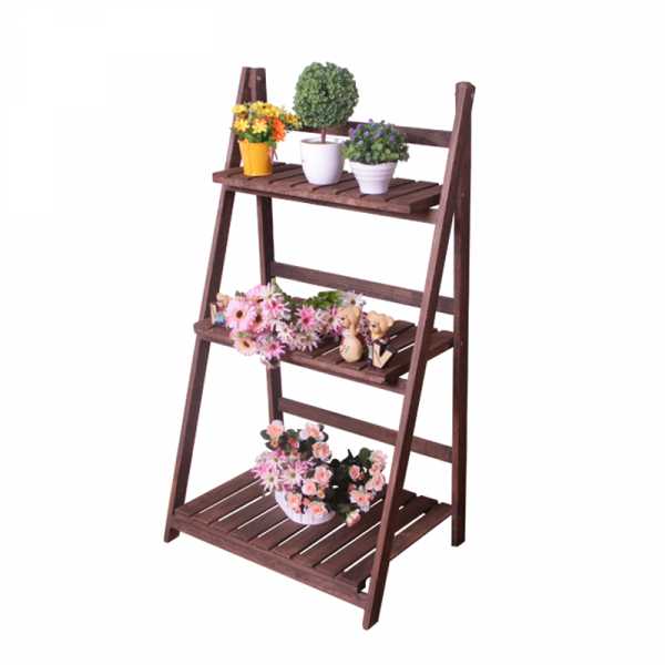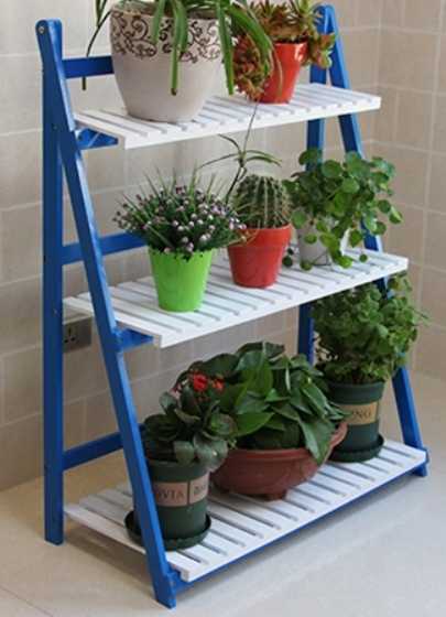 Конструкции с возможностью вертикальной установки горшков именуются этажерками. Они могут иметь вид колонны, когда полки располагаются строго друг под другом, либо стремянки – в этом случае полки будут располагаться лесенкой. Такие конструкции позволяют расположить растения с пышными кронами наверху, чтобы входящие в комнату могли видеть красоту, при этом более маленькие цветы не заслоняются от света и получают благоприятные для фотосинтеза условия. Домашние самодельные подставки этажерки для цветов популярны не только на террасах и в эркерах, но и в простой городской квартире. Они эргономичны, позволяют экономить пространство.