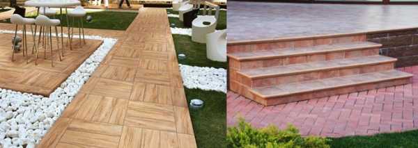 Керамическая плитка для улицы – самое известное покрытие. Она производится методом обжига, который придает покрытию прочность. Поверхность керамики шершавая, что дает возможность ходить по ней зимой и во время дождя. Керамика дешевая и простая в монтаже.