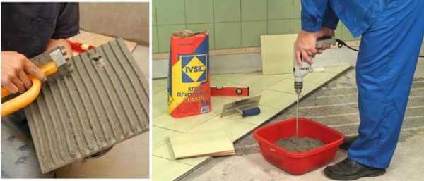 В первую очередь, необходимо подготовить плиточный клеевой раствор. Сухая смесь разводится чистой прохладной водой до 200С.