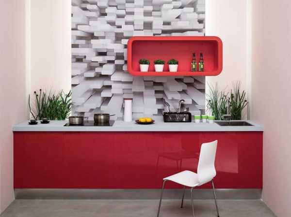 Для красной кухни подобрать фотообои достаточно сложно. Ведь яркий цвет доминирует сам по себе. Чтобы успокоит буйство цвета, рекомендуется выбирать фотоизображения со светлыми тонами. Это могут быть следующие цвета: молочный, кремовый, белый, бежевый. Хорошо смотрятся фотообои в светло-сером тоне.