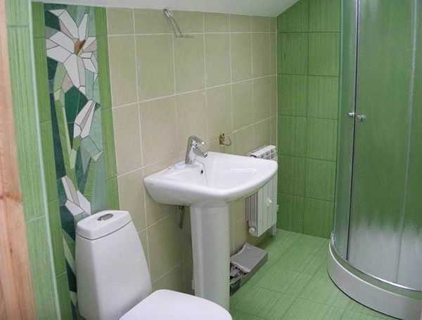 Освежающий цвет живой природы прекрасно подходит для оформления ванной площадью 3 кв.м. Бледные оттенки зеленого желательно подчеркивать более насыщенными травяными узорами, оттенять коричневым или серым. В сочетании с зеленым цветом лучше смотрится мрамор, необработанный камень, медь, глина, дерево, чем белая глянцевая керамика.