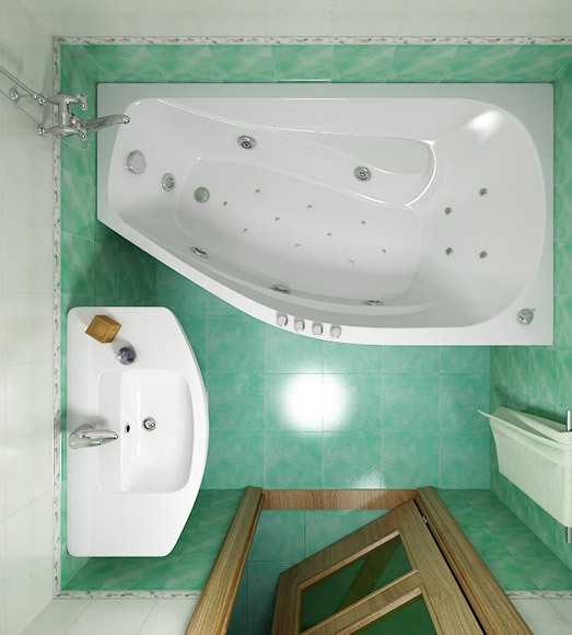 Почитатели расслабляющих спа-процедур с ароматическими свечами и пеной ни за что не откажутся от вместительной ванны. Но это и не обязательно — если подобрать угловую, четкой прямоугольной формы или сужающуюся в виде капли емкость, она легко впишется в комнату 3 кв.м.