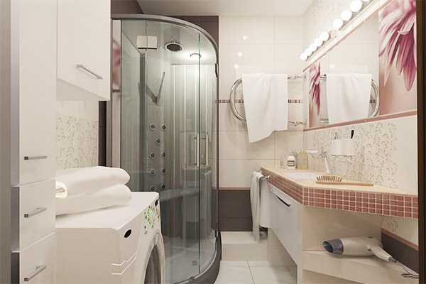 В случае, когда даже приведенные примеры не помогают вписать стиральную машинку в интерьер ванной, нужно пробовать освободить для нее дополнительное место. Добиться этого можно заменой ванны (что занимает половину пространства) на душевую кабинку, что намного компактнее. Полученного дополнительного пространства должно хватить не только под машинку, но и для емкости, что будет содержать грязное белье, а также для различных шкафчиков.