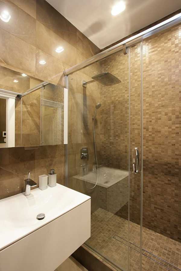 Стандартные ванны занимают очень много места. Если помещение слишком тесное, то вместо ванны можно установить более компактную душевую кабинку. Посмотрите несколько вариантов, как размещена душевая кабина в маленькой ванной комнате на фото: