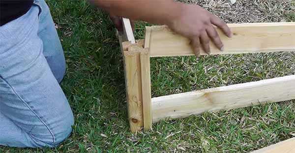 2. Собираем высокие грядки. Высокая грядка не имеет дна и состоит из столбиков с пазами со всех четырех сторон и досок с соответствующими пазами. Вы можете купить готовые ограждения для грядок или сделать их своими руками. Для ограждений лучше брать древесину лиственных пород, т.к. хвойные выделяют смолу, которая может оказывать ненужное влияние на состав почвы. Проверяем горизонтальность установки садового ящика уровнем.