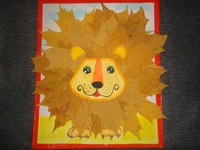 4. Приклеиваем на основу вокруг головы льва подсохшие листья клёна (см.фото).