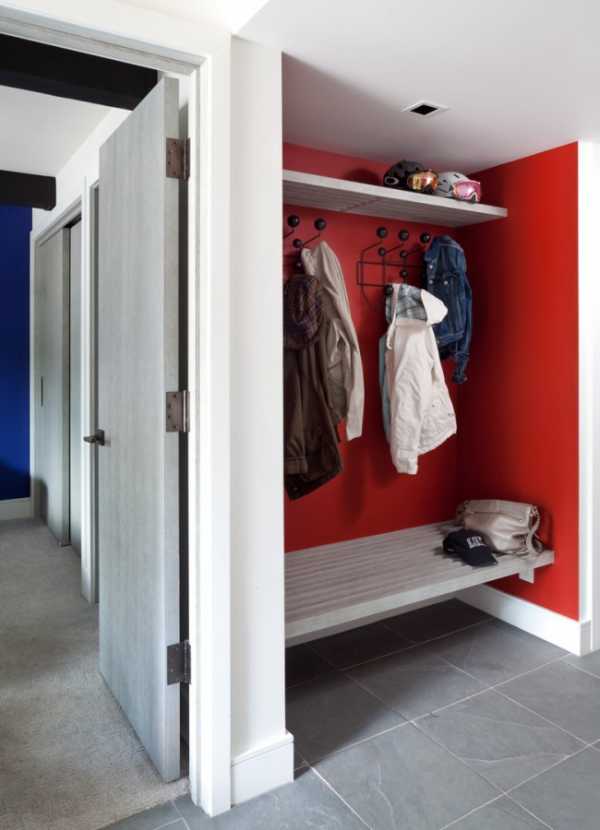 Оригинальное решение для маленького коридора — обустроить небольшую «нишу» для одежды с небольшой лавочкой для удобного обувания