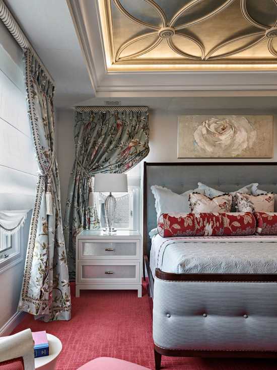 Для спальни римские гардины являются незаменимыми, так как с их помощью можно полностью закрыть окно, затемнив помещение. Кроме того, они создают атмосферу уюта и комфорта, образуя полумрак даже при дневном свете. При выборе расцветки можно сочетать их с постельным бельем или покрывалом.