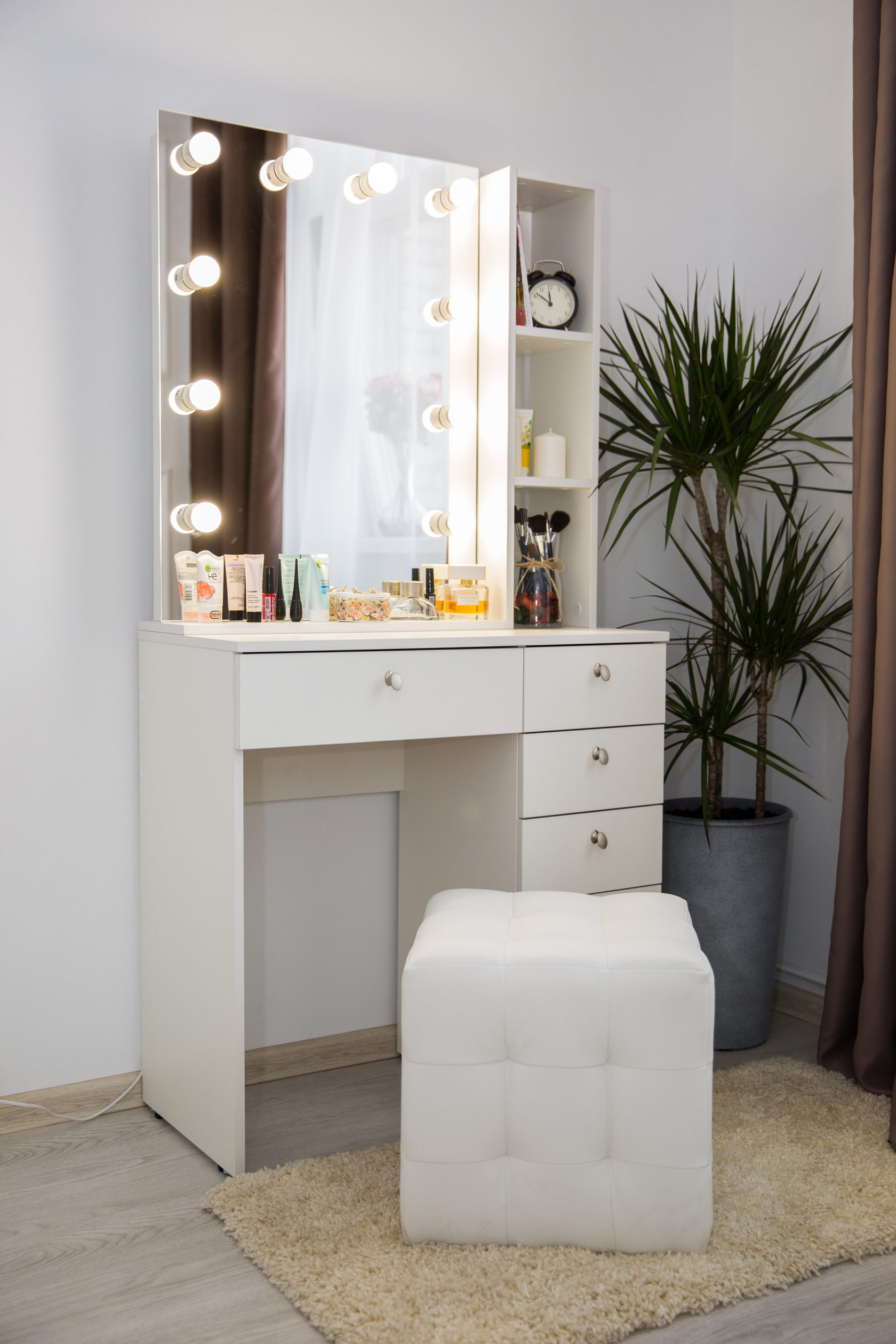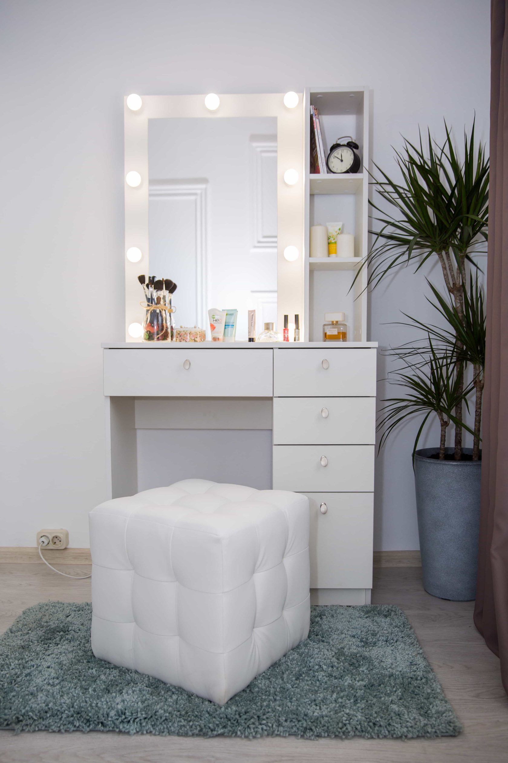 Столики для макияжа с зеркалом: Гримёрные туалетные столики с зеркалом и подсветкой