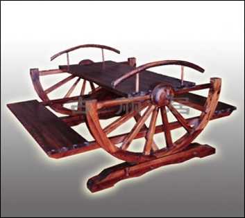 Вот такой вот деревянный стол предлагают корейские дизайнеры. Вместо ножек, стол имеет полуколеса, которые изобретены в стиле 17-18вв. Такой концепт прекрасно подойдет для вечернего отдыха с друзьями: шашлыки, вино, и просто приятная атмосфера.
