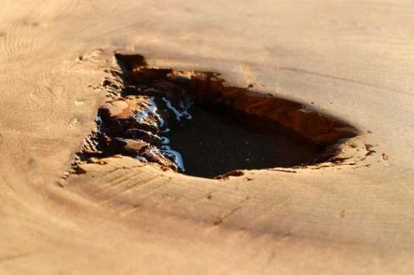 - Сожженная мебель – дизайнер из Голландии создает уникальные модели ручной работы, буквально сжигая их. После такой специфической обработки дерево заливается прозрачным эпоксидным покрытием, чтобы подчеркнуть текстуру и сохранить цвет горелой древесины.