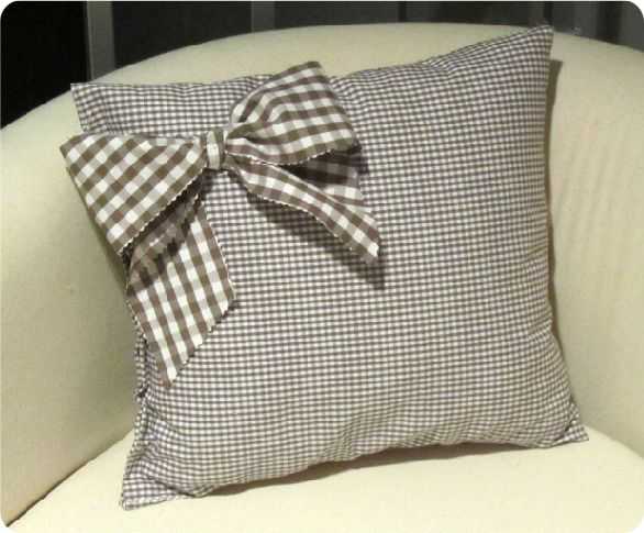Прикрепить бант к уже готовой сшитой подушке в углу или в центре, как вам нравится.