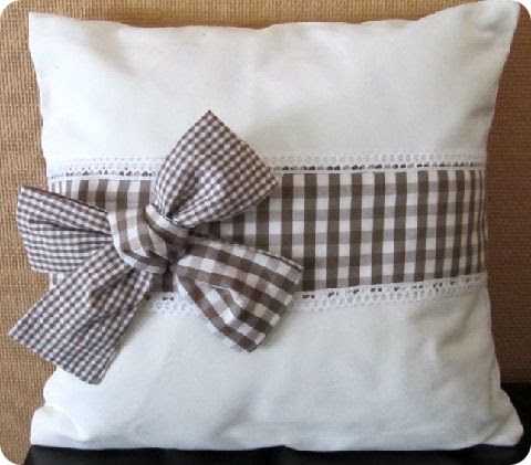 Декор подушек бантами мне всегда нравился. Банты можно сделать из той же ткани, что и подушка или другого материала, из тесьмы, лент.