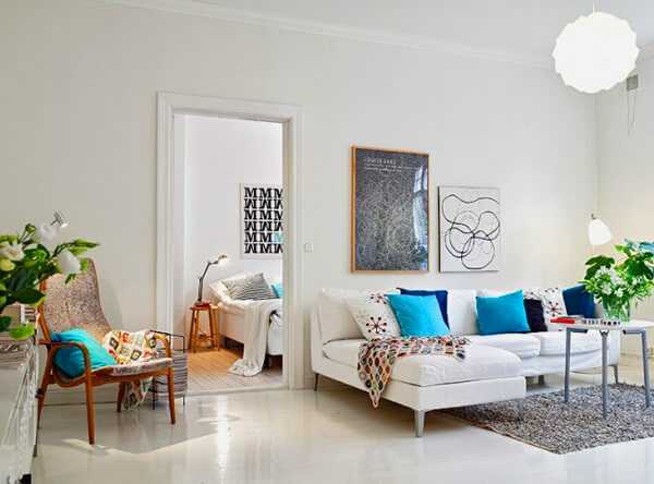 Яркий декор всегда будет уместен в просторной и светлой комнате